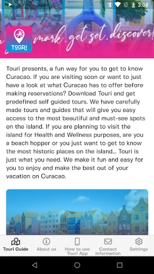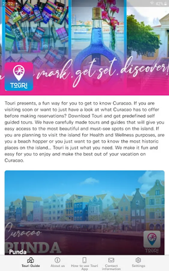 Touri presents, a fun way for you to get to know Curacao. If you are visiting soon or want to just have a look at what Curacao has to offer before making reservations? Download Touri and get predefined self guided tours. We have carefully made tours and guides that will give you easy access to the most beautiful and must-see spots on the island. If you are planning to visit the island for Health and Wellness purposes, are you a beach hopper or you just want to get to know the most historic places on the island... Touri is just what you need. We make it fun and easy for you to enjoy and make the best out of your vacation on Curacao.
