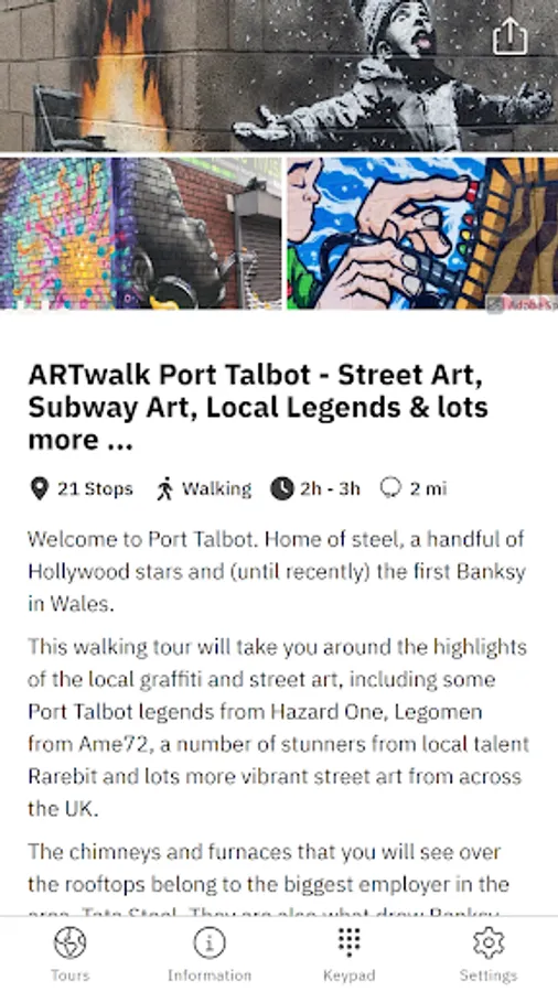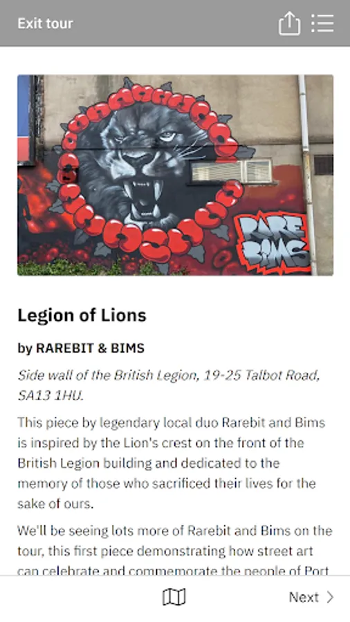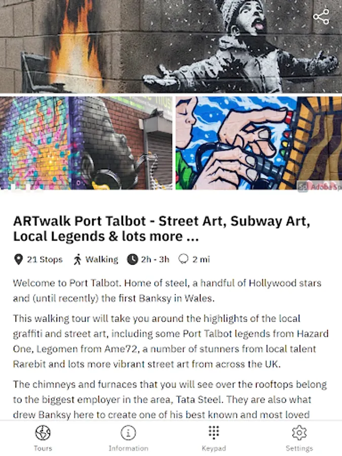 The app features photos, videos and audio commentary to accompany the rich landscape of street art and artists currently painting in Port Talbot.