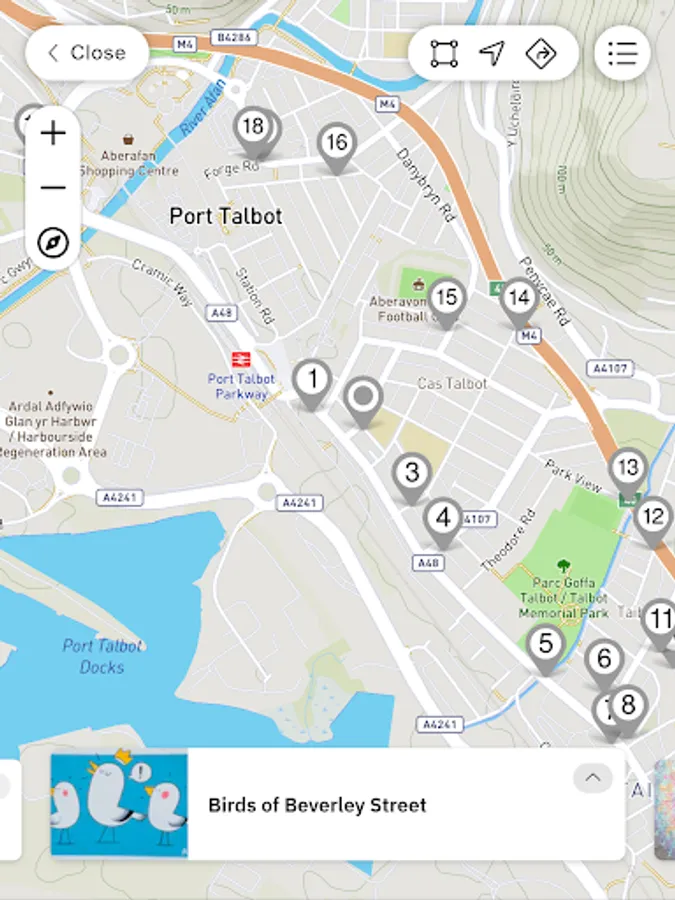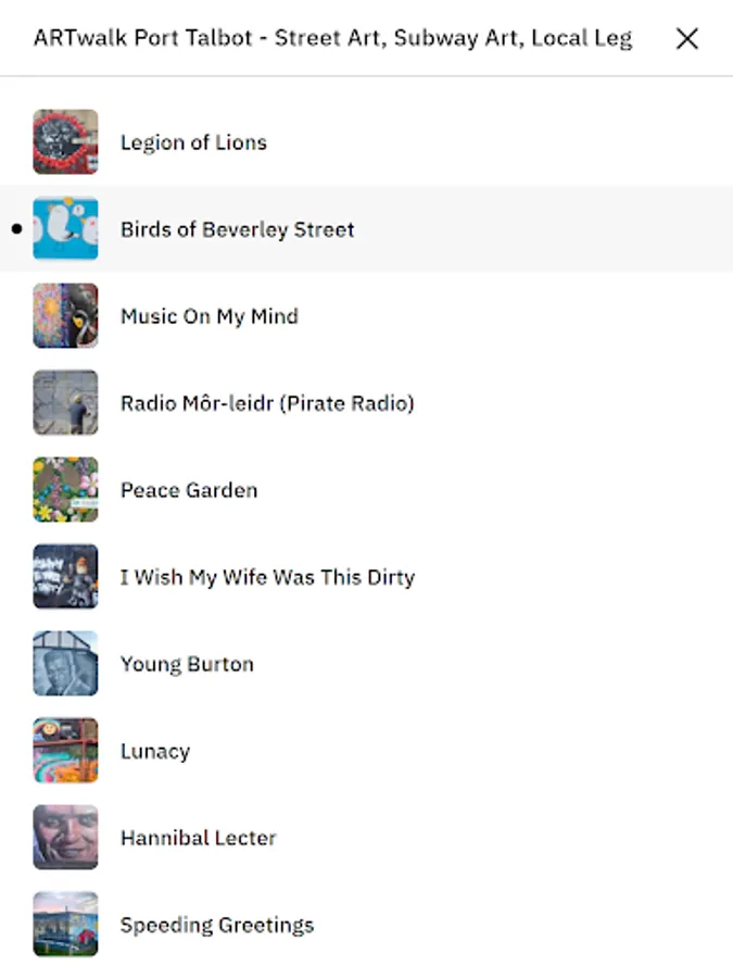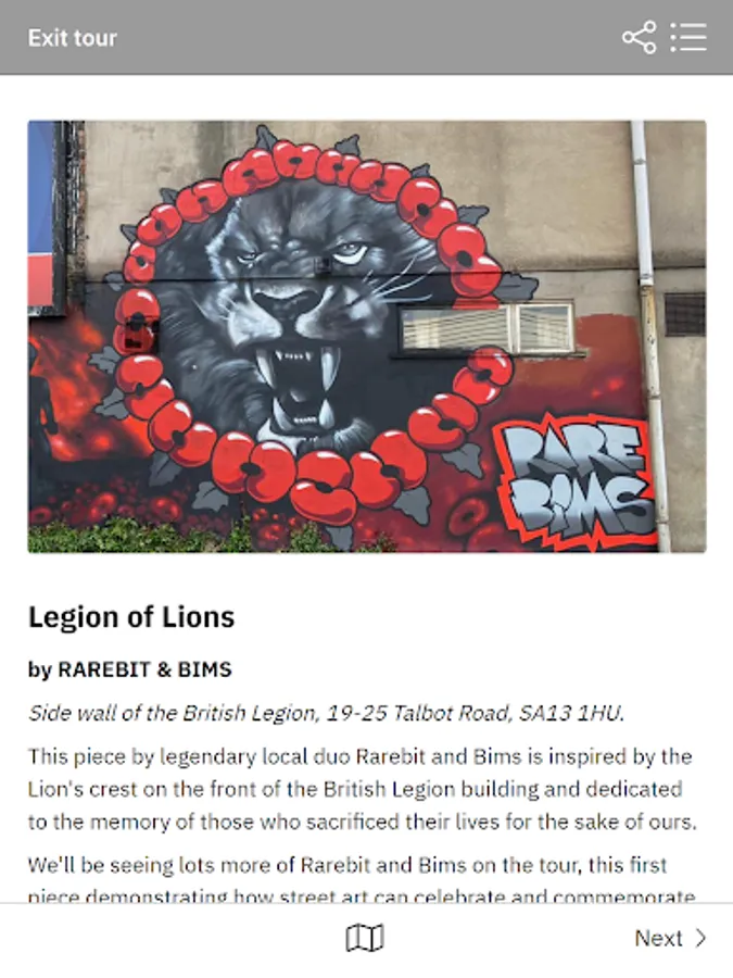 This app guides you around the street art highlights of Port Talbot in South Wales. Including graffiti and stencil art by Banksy, two Legomen by Ame72, various pieces by local legend Rarebit and a number of new artworks commissioned for ARTwalk.