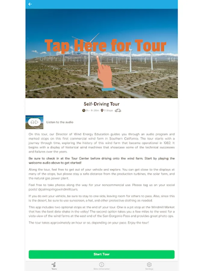 These majestic giant wind turbines are an iconic symbol as you arrive in the Coachella Valley. Our self-driving windmill tours allow you to explore the evolution of wind turbines on a private wind farm from the comfort of your own vehicle. The tour allows you to exit at each stop and guides you with a curated video. Are you ready to become a wind energy hack?