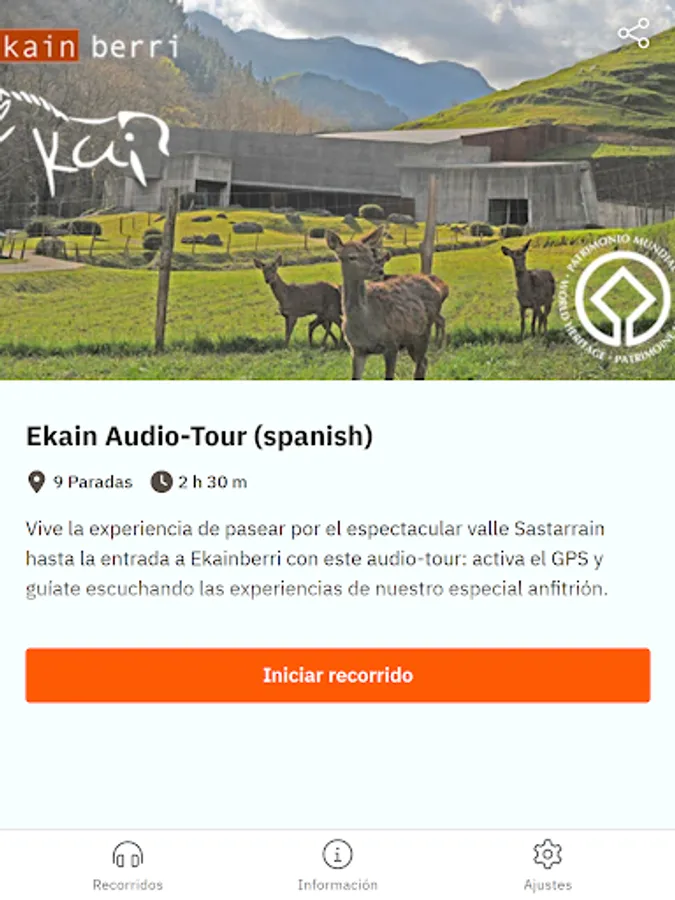 Live the experience of walking through the spectacular valley Sastarrain (Zestoa) to the cave Ekain (Heritage) with this audio-tour: active listening Be guided GPS and experiences of our special host. The tour ends at the entrance to Ekainberri, the Ekain cave replica, where you can enjoy the most perfect set of horses of all art Quaternary.