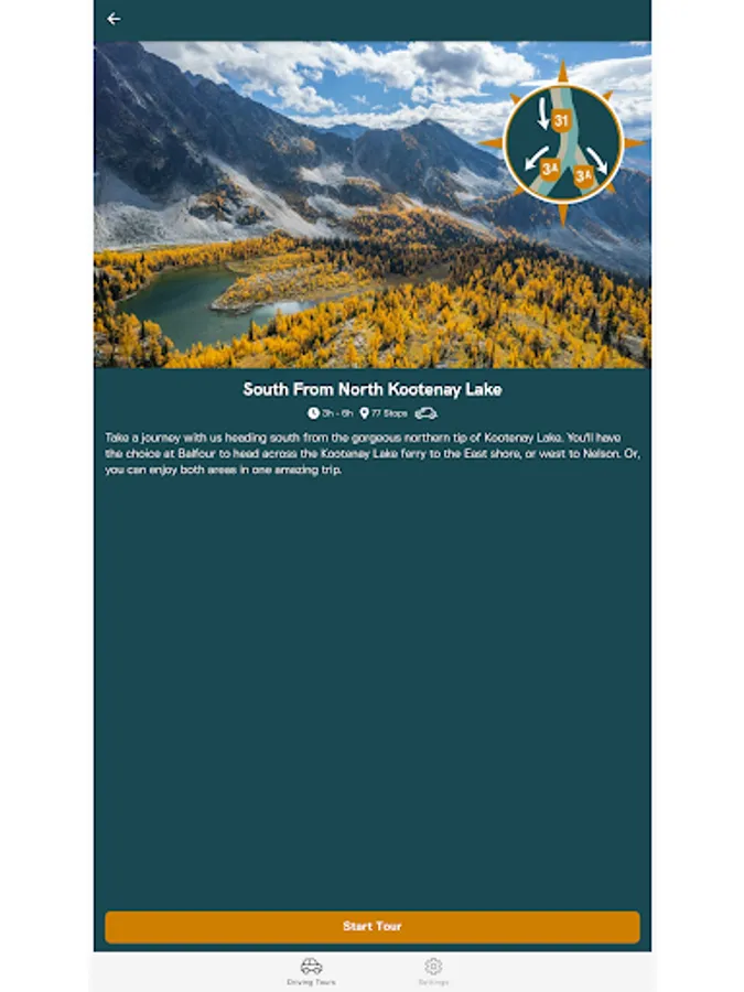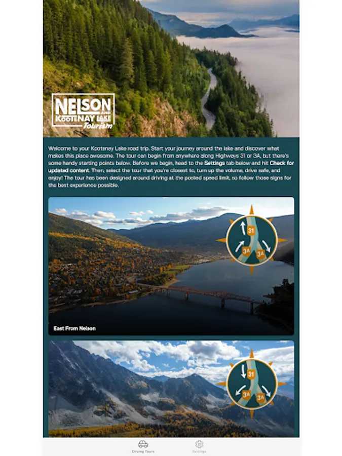 With over 180km of gorgeous highway driving, close to 100 sights, sounds and stories, and three different directional routes, we have created an informative journey that fits with your travels. The tour can begin from anywhere around Kootenay Lake and you can use the app as long, or as short as you'd like. Simply start the tour, and you get a fully guided audio experience as you drive around Kootenay Lake.