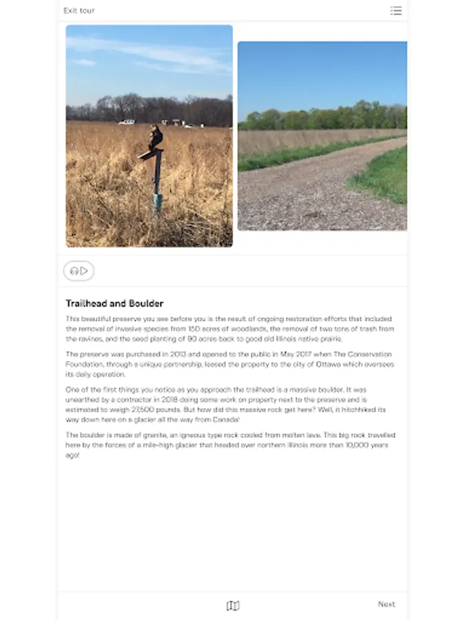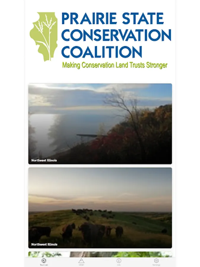 Prairie State Conservation Coalition (PSCC) is a non-profit organization created to assist conservation land trusts, land owners, and communities in their efforts to protect land and water resources in Illinois. This Hike App was created with the support of PSCC, the Donnelley Foundation, and the Grand Victoria Foundation to further enhance public awareness and foster community interactions with Illinois natural areas and open lands. With this App, land trust organizations in Illinois now have an outlet to provide interactive tours of their project sites. These tours are guided by GPS and conveniently available on your mobile devices. The Hike App leads you through an interpretive hike in a natural area of your choosing. Limited hikes are currently available; more hikes are coming soon.