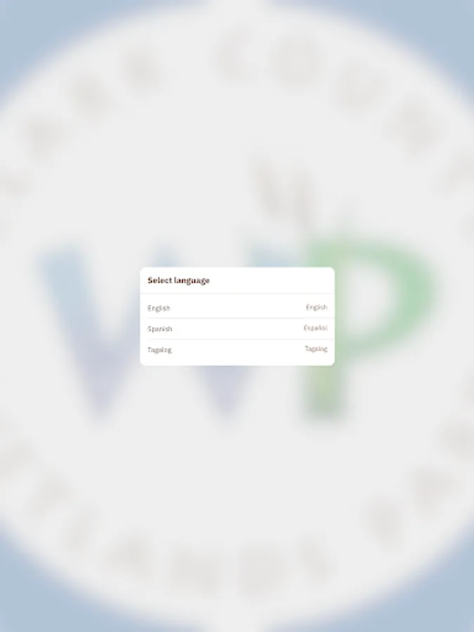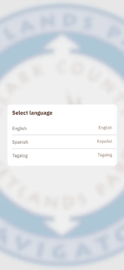 Tours and Park content are available in English, Spanish, and Tagalog.