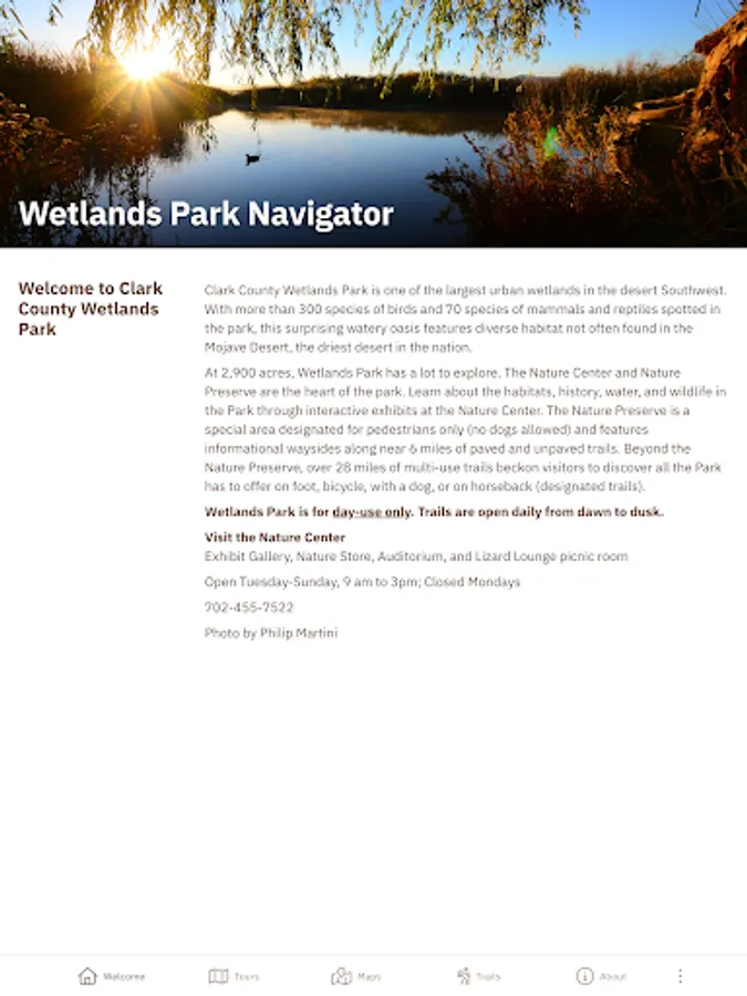 This app was created in partnership with the Wetlands Park Friends, the non-profit organization that supports Wetlands Park programs and activities. Funding was provided by REI Co-op through their community grant program that encourages everyone to enjoy the outdoors.