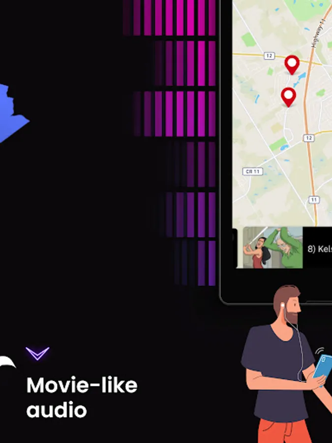 As you travel from location to location, you'll hear location based audio that sounds like it's straight out of a movie!