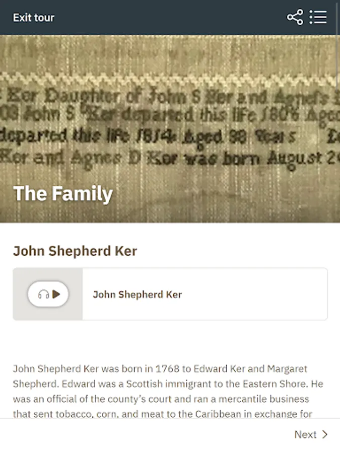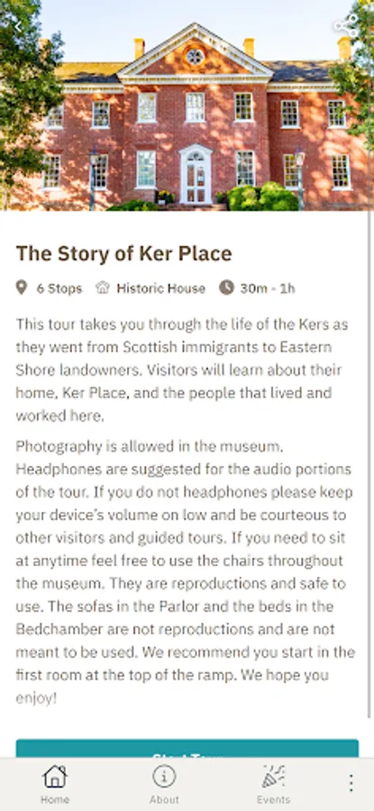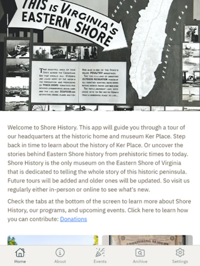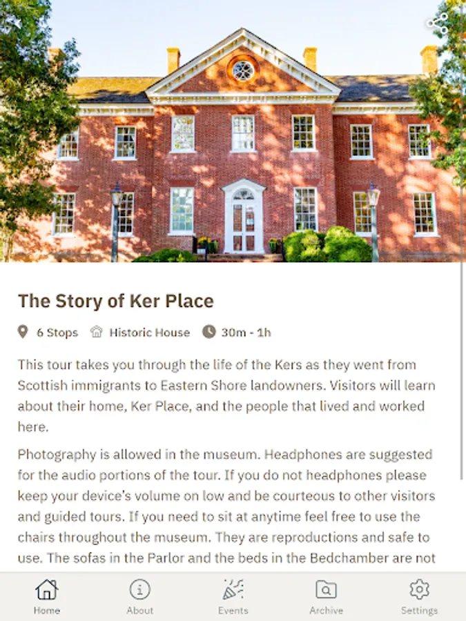 This app will take you through a visit of the museum at Ker Place with multiple self-guided tours. It can be used as you explore the museum in-person or from anywhere in the world for online visitors. Stories from over 400 years of Eastern Shore history are told with photographs, documents, and audio. You can also use the app to access our website where you can buy tickets and register for upcoming events and browse our online archive.