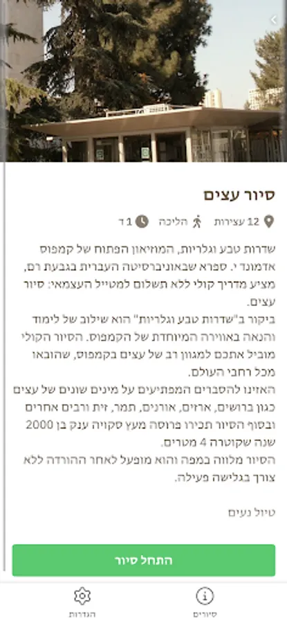 Sderot nature and galleries, the museum's open Edmond J. Safra Campus. Safra Givat Ram Hebrew University, offers free audio guide for independent travelers: Tour trees.