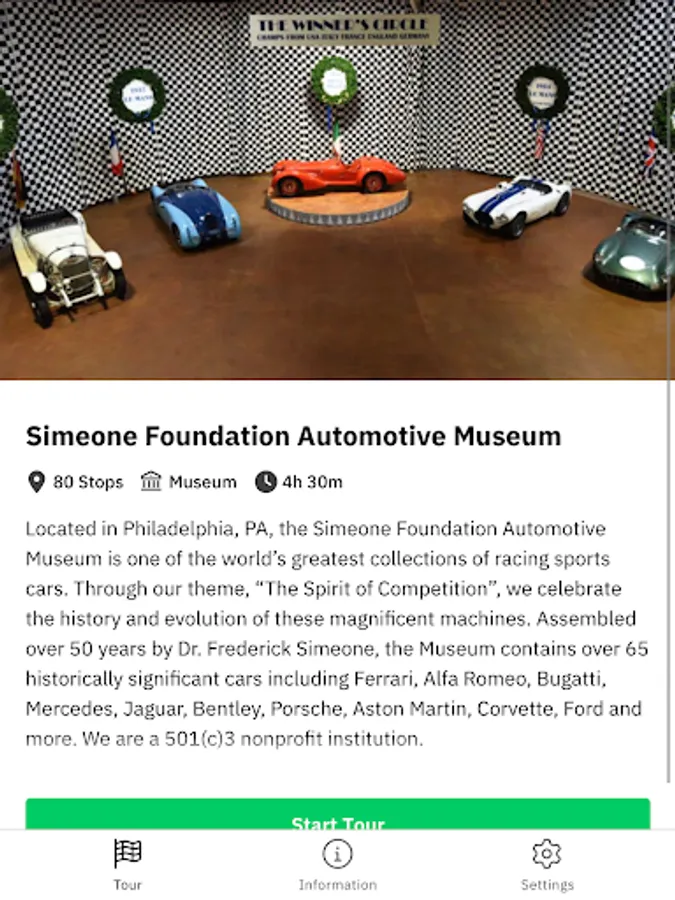 The Simeone Foundation Automotive Museum is one of the world's greatest collections of racing sports cars. Assembled by Dr. Frederick Simeone over a span of 50 years, the Museum contains over 65 of the rarest and most significant racing sports cars ever built. The Simeone was chosen ‘Museum of the Year’ by the International Historic Motoring Awards in London.