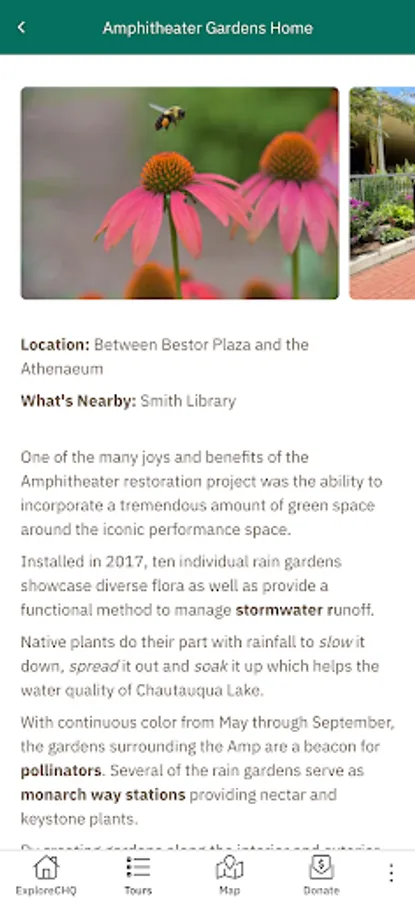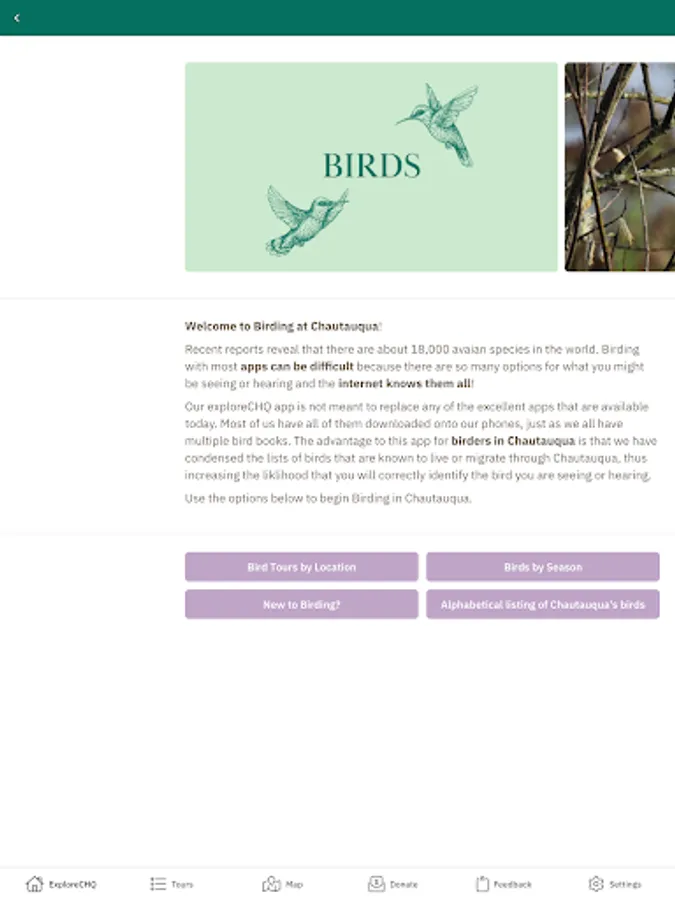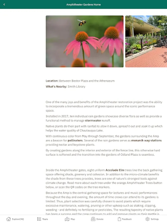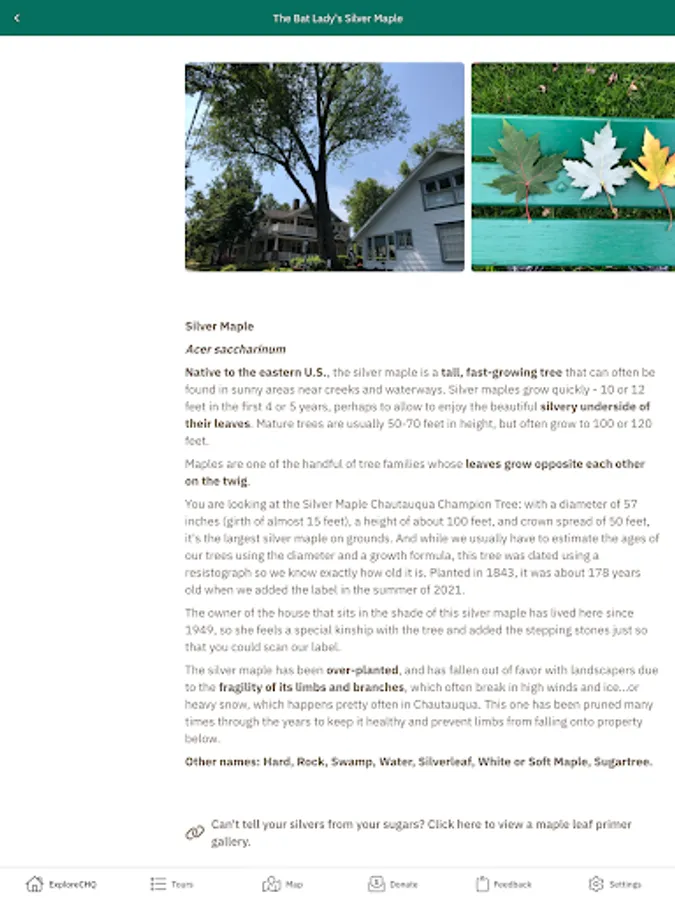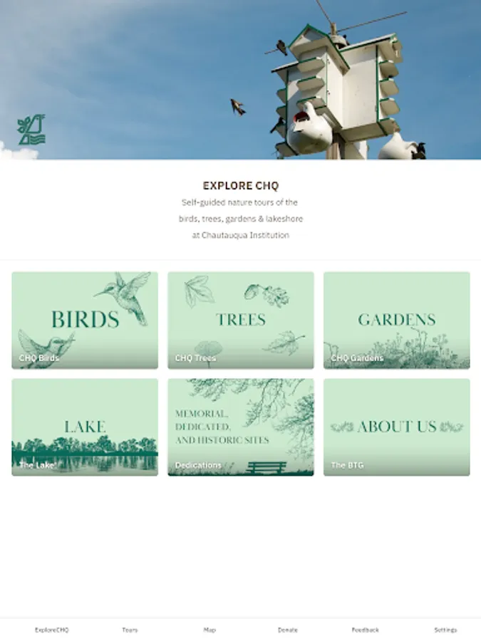 Chautauqua Institution is known for its lectures, theater, opera, symphony, ballet, sailing, golf, and tennis. But living amongst all that human activity is a rich natural world with thousands of trees and birds, hundreds of gardens, and a thriving lakeshore habitat. Use the Chautauqua Bird, Tree & Garden Club's self-guided touring app to discover the natural world on the 250-acre campus.