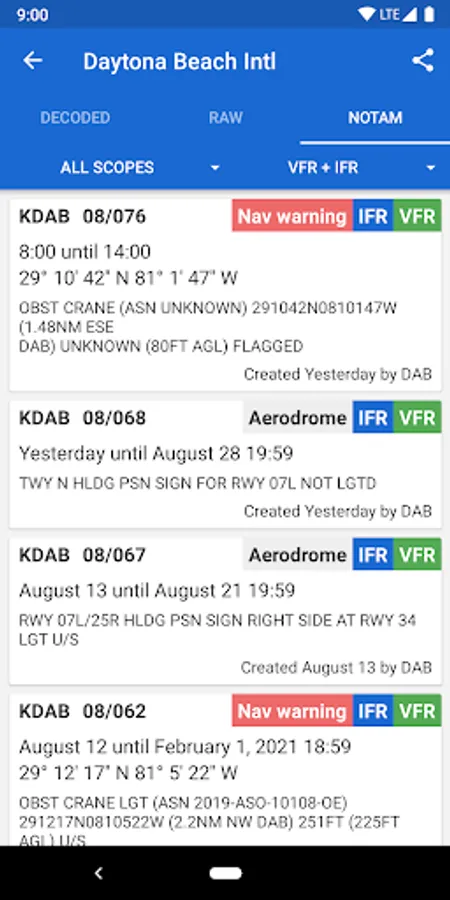 As a bonus the app offers access to NOTAM for the weather stations, which will be downloaded, in part decoded and which can individually be marked as read. This way you can easily keep track of new and relevant NOTAM.