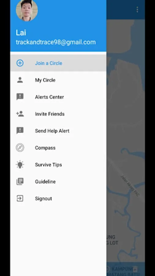 Track and Trace is a mobile application that help the rescue team to find the missing people. However, others user also can use this application. This mobile application can allow users or rescue team make real time location tracking and sharing to each other. This application also provides offline mapping to help rescue team reduce the time of mapping. This project developed by using Android Studio and the Firebase. This application is only available for Android phone. The user can login by using email. After login user can join the circle by adding another user’s invite code. The users in the same circle can share the real time location to each other. This application will provide mapping tools such as pin point marker. The function of this application is sharing the real time location to each other and point the mapping tools to the map.