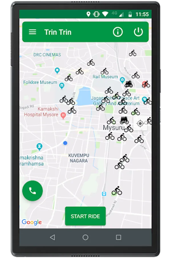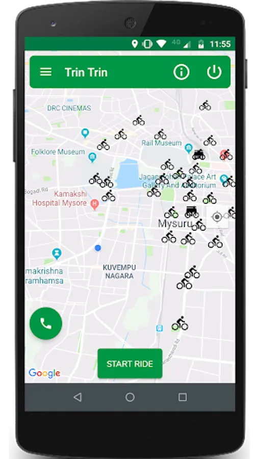 “TrinTrin”, the PBS of Mysuru will be implemented and operated by Green Wheel Ride, an Mysuru city based enterprise engaged in manufacturing eco-friendly battery-operated bicycles, and promoting the concept and culture of cycling in Mysuru City. Currently the system features 52 hubs and 450 bicycles.