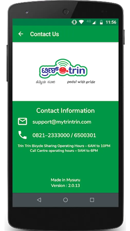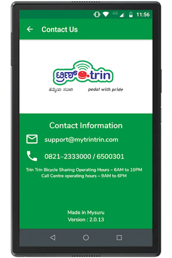 TrinTrin is the Public Bike Share (PBS) system of Mysuru, a world-renowned heritage city, the cleanest city of India and the cultural capital of the state of Karnataka in southern India. By virtue of its lifestyle, history, geography and environment-friendliness, Mysuru pre-eminently qualified for the service of such a system.