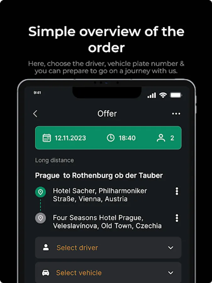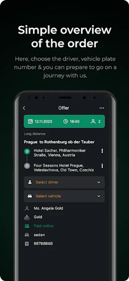 Get insight into your performance with regular quality updates, manage rides and send automatic status updates to passengers, contact our 24/7 corporate support directly through the app at the touch of a button.