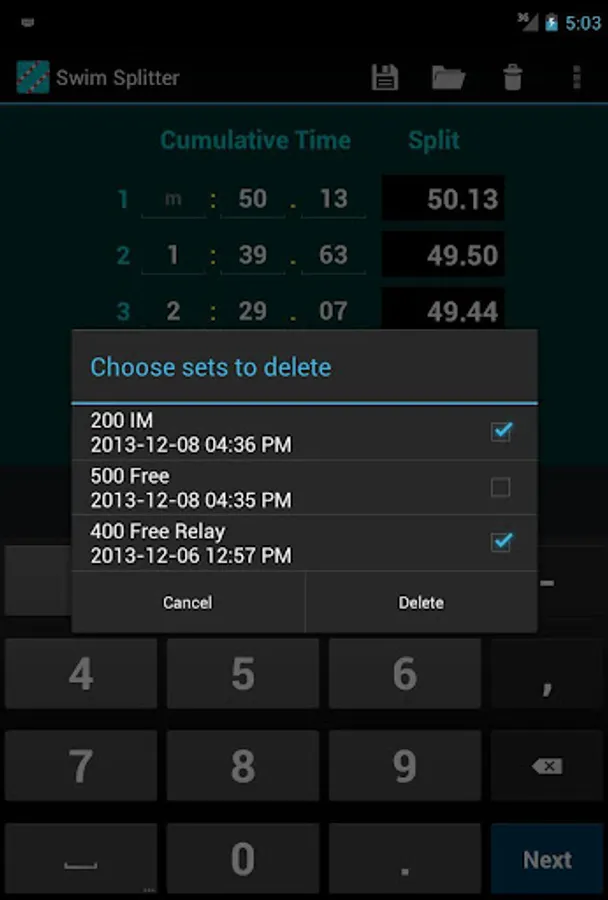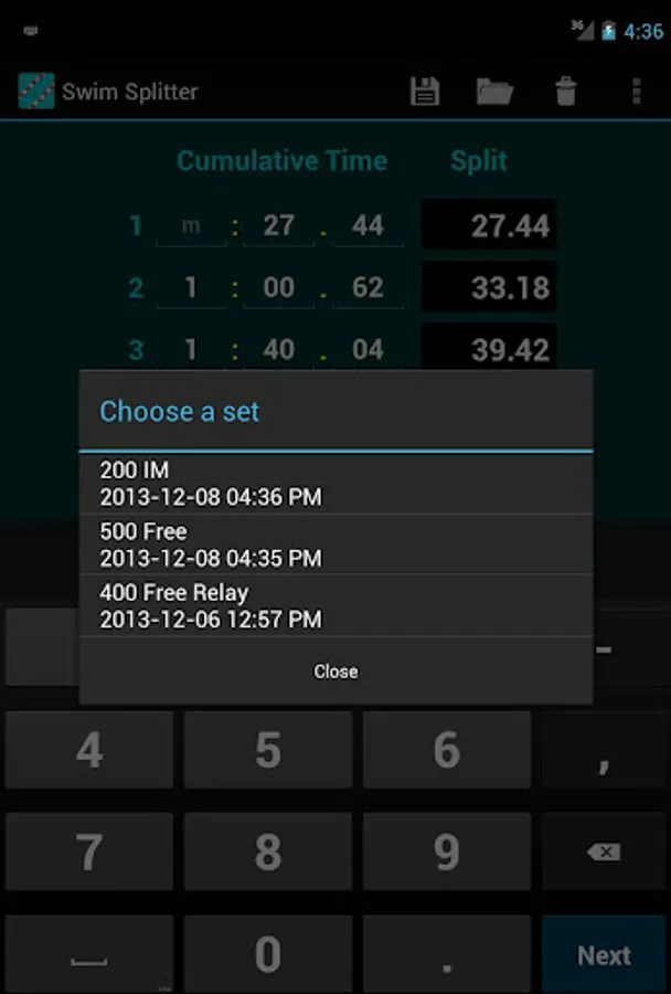 You can't get official splits any faster or easier than this! A set of splits can also be saved for future review. In addition, there's a mode that allow splits to be "recorded" when the scoreboard provides them so you'll have a complete record of all your swimmer's times in one convenient place. See the screenshots and video for a clear demonstration of this indispensable app for the swim mom or dad. Take it from a swim parent, sooner or later you'll need this app!