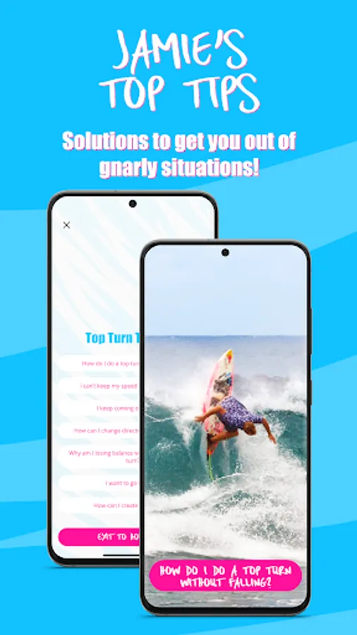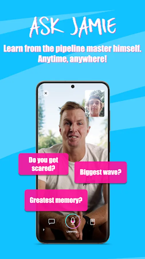 Jamie O’Brien’s surf app & surf class allows you to develop skills that have taken Jamie O’Brien a lifetime to learn; ask him questions about surfboards, the best tides for surfing or how he became a YouTuber, enjoy fun interactive surfing training lessons while learning to surf better, reach your surfing goals or win a trip to a surf camp with Jamie.