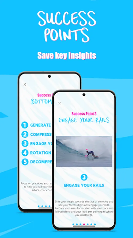 With the Surf App Success Points feature you can receive key insights & useful reminders on how to succeed in your surf training.