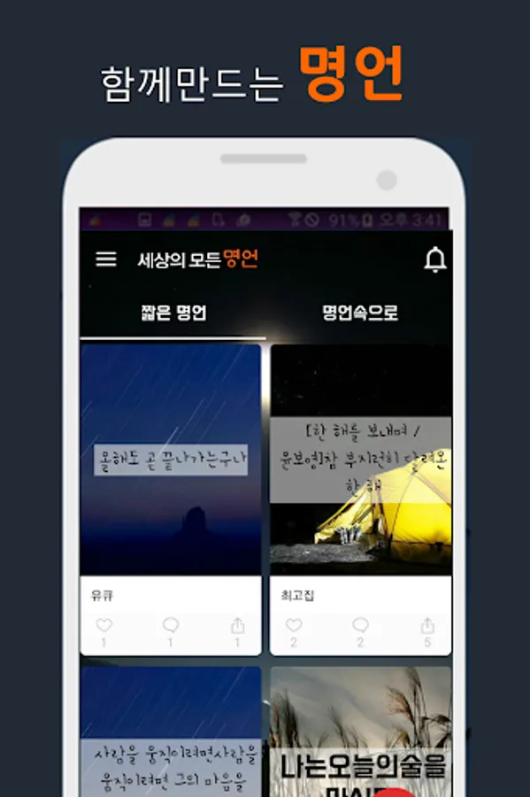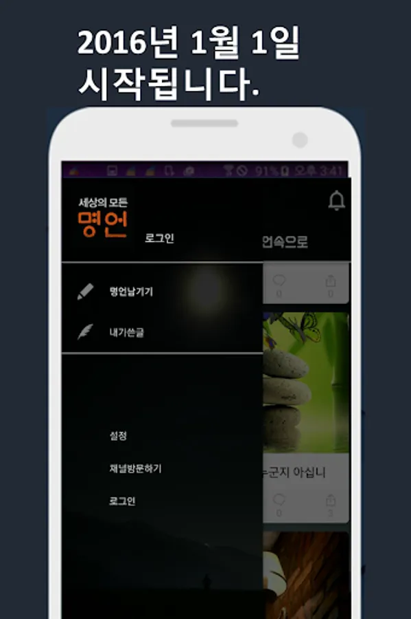 [All Quotes in the World], a popular Kakao Story content, greets you again as an official application on January 1, 2016 for better communication with members.