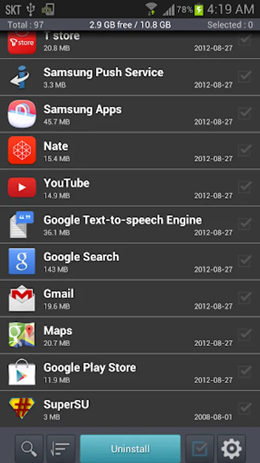 Uninstaller (App Uninstall) can remove user-installed applications or unnecessary system applications.