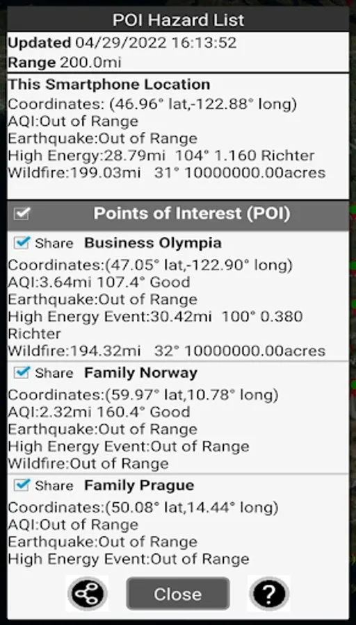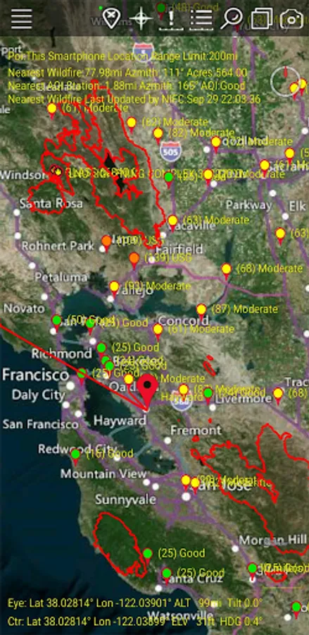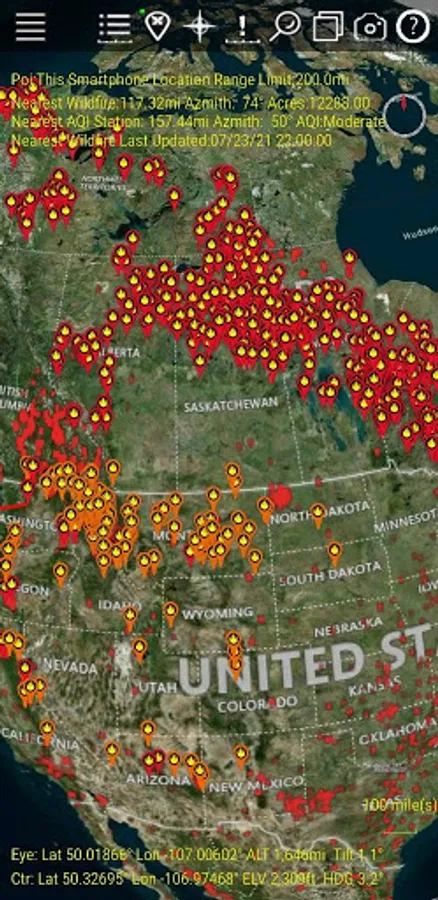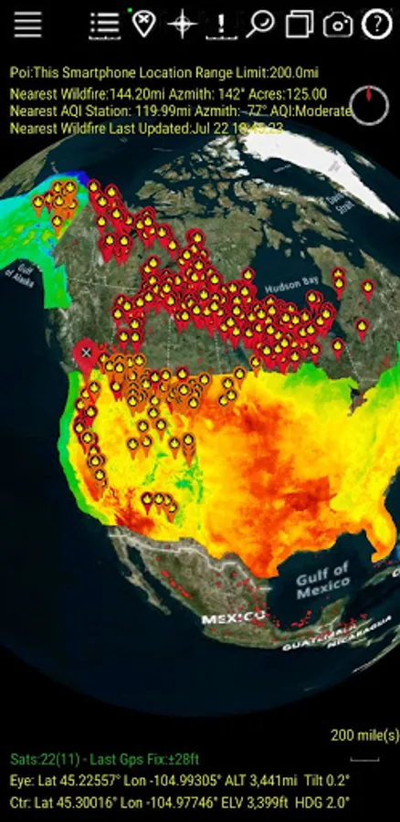Displays all the current Wildfire locations in the USA and Canada and potential Hot Spot ones using NASA high resolution satellites. We show live air temperatures for around the world. We also show your distance and direction to nearest Wildfire relative to your smartphone. You can set locations of family, friends and business relative to nearest Wildfires. Not only wildfires but the wind directions, drought conditions, air temperatures can be shown along with Wildfire perimeters, weather and more related in some way to wildfires.