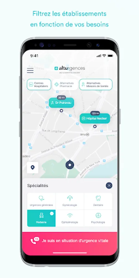 The Alturgences mobile application allows you to easily find a health professional (doctor, pharmacy, medical office, public and private emergencies) for an immediate consultation without an appointment.