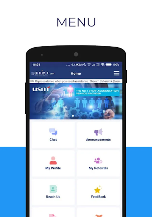 "USM amigo" is a supporting app for USM Consulting Employees to communicate with USM backend teams. "USM amigo" creates powerful communication channel between consulting employees and USM internal departments like Human Resources, Times sheets, payroll, Immigration, Marketing and Accounts.