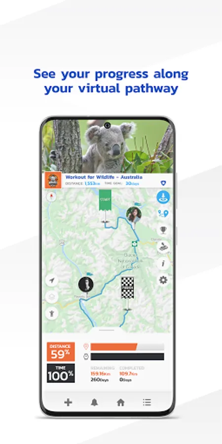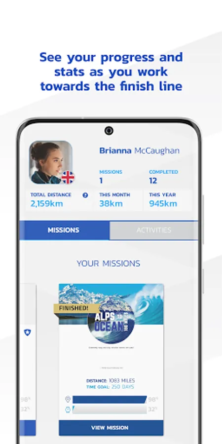 ⊕ Share your mission with friends and follow others as you progress towards your goal.