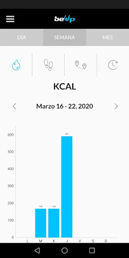 Both your sports activity in beUp, and the one registered by your Apps and devices, will be counted in the Statistics module.