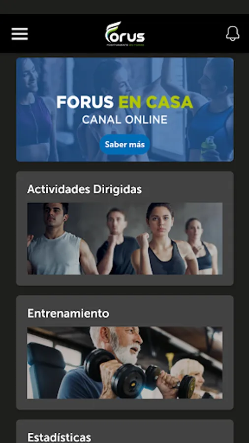 ENFORMAPP is an extension of your sports center, so in addition to all the training options, it offers you the "Forus listens to you" section, and the option to manage your Forus administrative account.