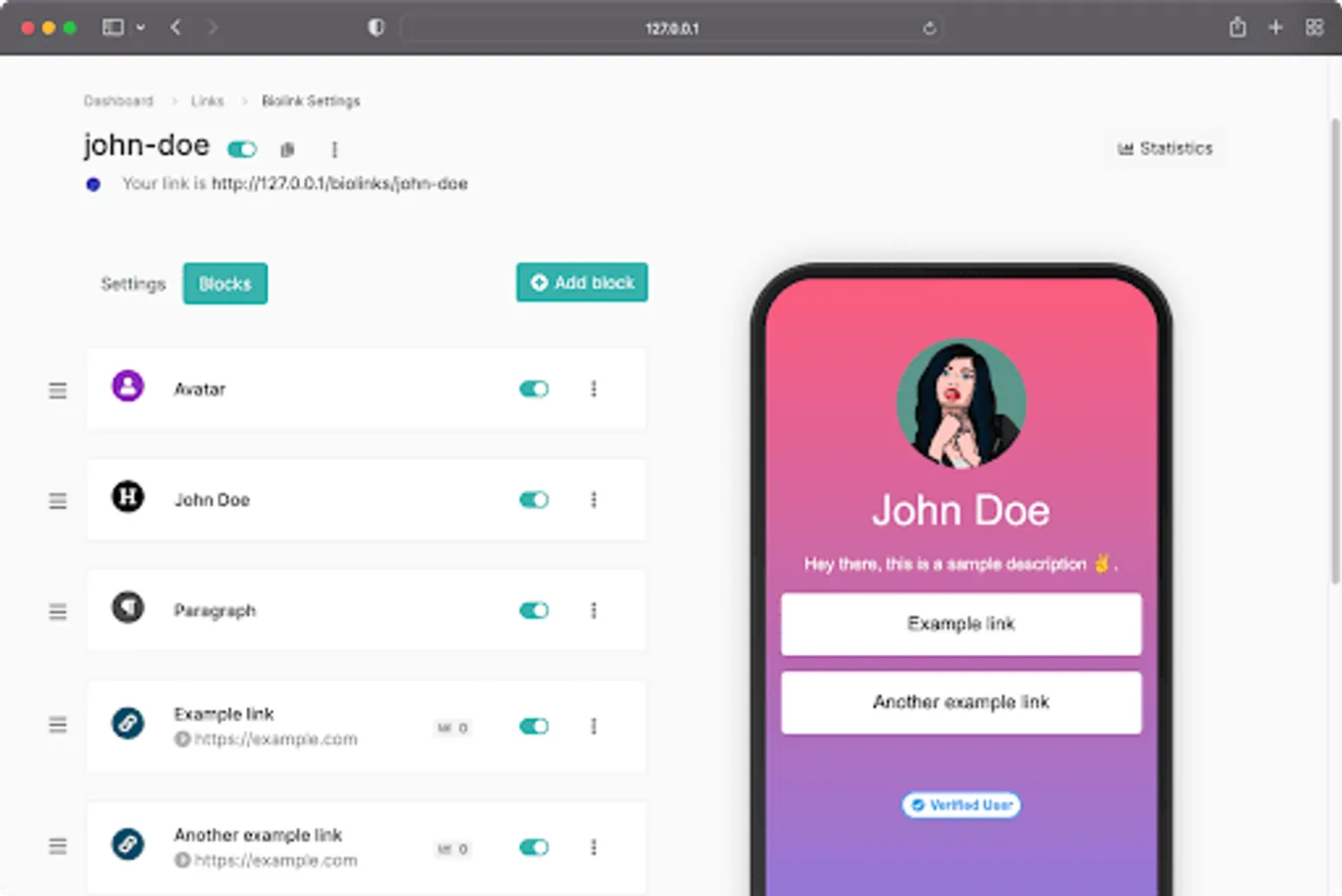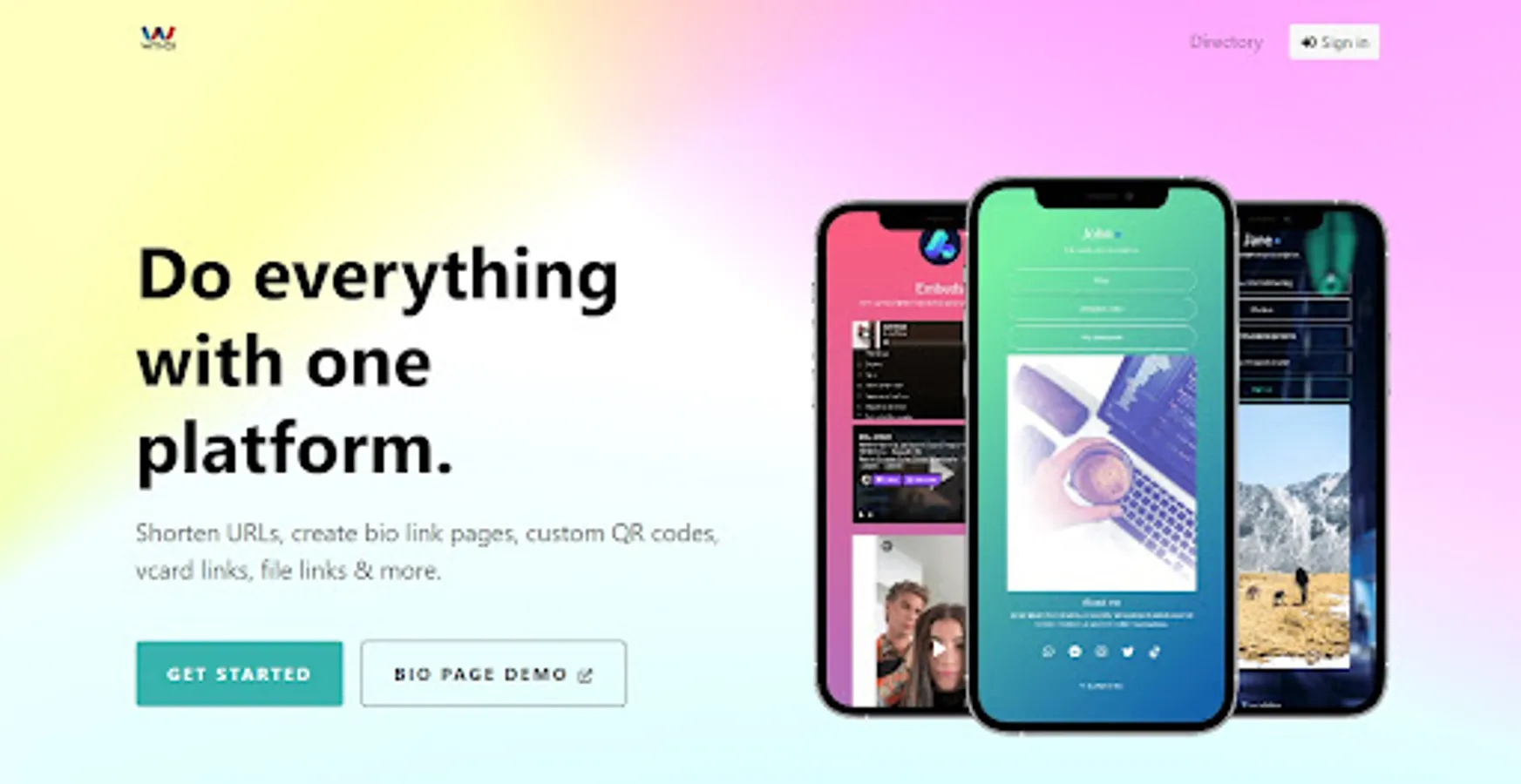 Shorten URLs, create bio link pages, custom QR codes, vcard links, file links & more.