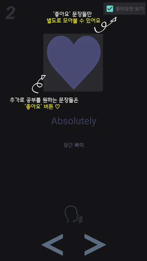 You can save the sentences you want to memorize separately with the bookmark (like) function.