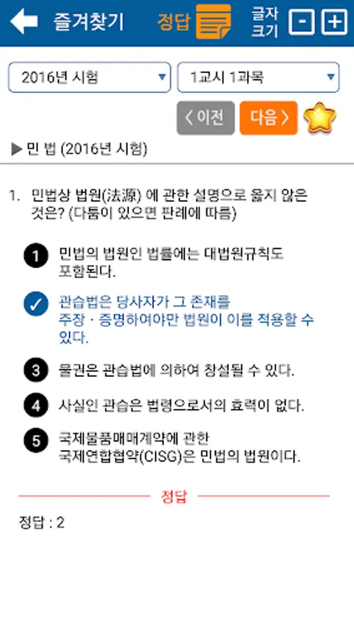If you bookmark a part that you are not familiar with while making a study quiz and viewing the question and answer, you can check all of your favorite questions in Check Favorites.