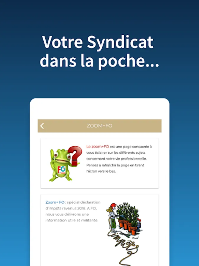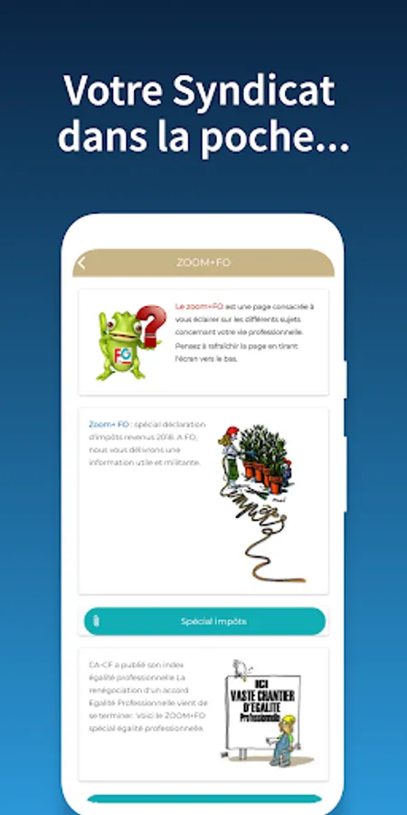 Get on your smartphone, tablet, essential information of FO Créddit Agricole Consumer Finance. We will share: timeliness, "Did you?" Invaluable topic of your rights, our leaflets and notices, the EC-CP-HSC bodies, negotiations, agreements. A special section for members. A plurality of information to avoid traps and many know their rights