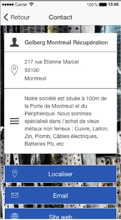 Counter Purchase metals on east side Paris Montreuil 100 m from the Device Output Porte de Montreuil and Porte de Bagnolet.