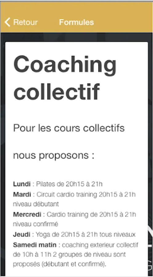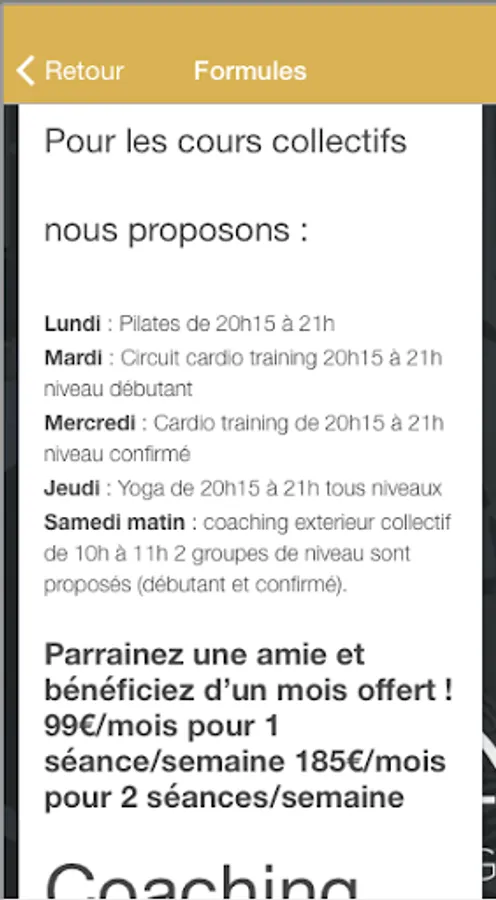 Our "Best Training" application offers you the possibility to consult all the useful information of your tailor-made coaching (Tariff, Services, Reviews ...) But also to receive our last news in the form of "Push Notification".