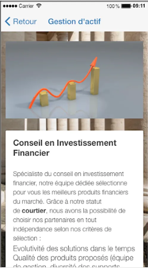 Our Application "RP2I" offers the opportunity to consult all the facts of our wealth management firm (Price, Features, Opinion ...)