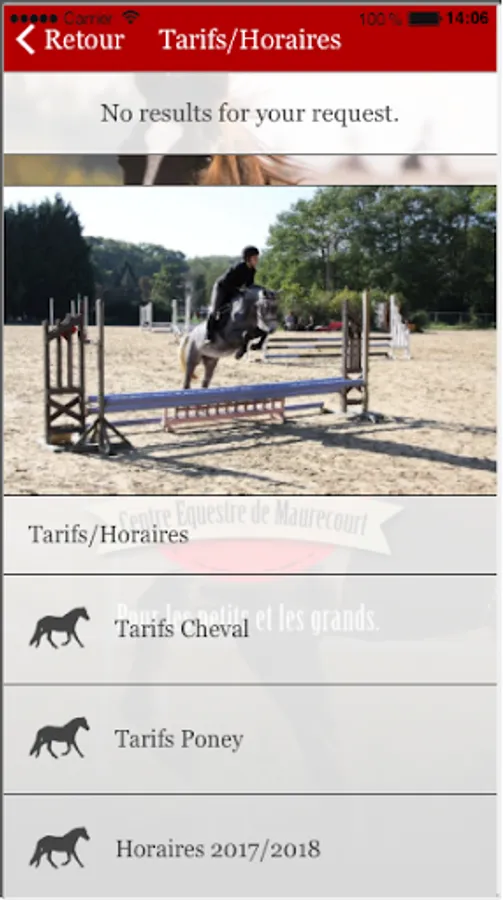 Our Application "Equestrian Center Maurecout" offers the opportunity to consult all relevant information about your Stable (Our Services, Our Stable ...)