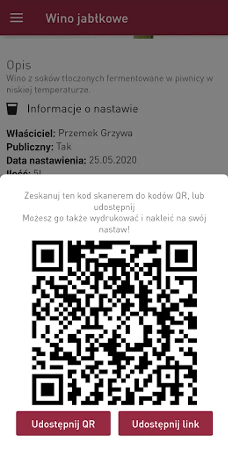 Share wine on social networks and brag about your settings. Print and stick the QR code on your settings to easily find it.