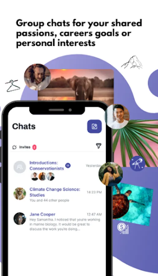 - Find and connect with people, from across the world, who share your interests and aspirations