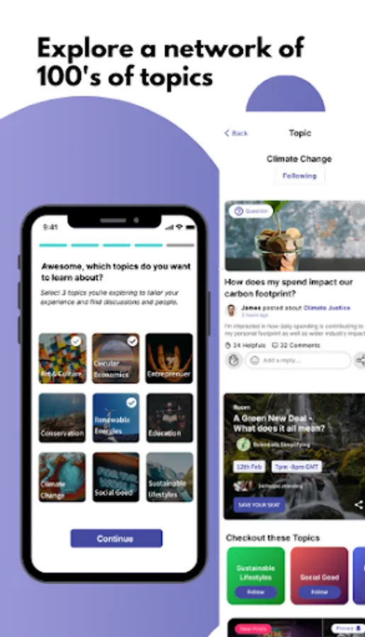 Discover thousands of people and discussions from over 200 topics. People reinventing the fashion industry, to sharing tips on travelling sustainably. How creative design and the arts can improve society and protect wildlife on the planet. Join live-cohort based courses with mentors, build skills, explore new world views and go towards your ambitions with your peers.