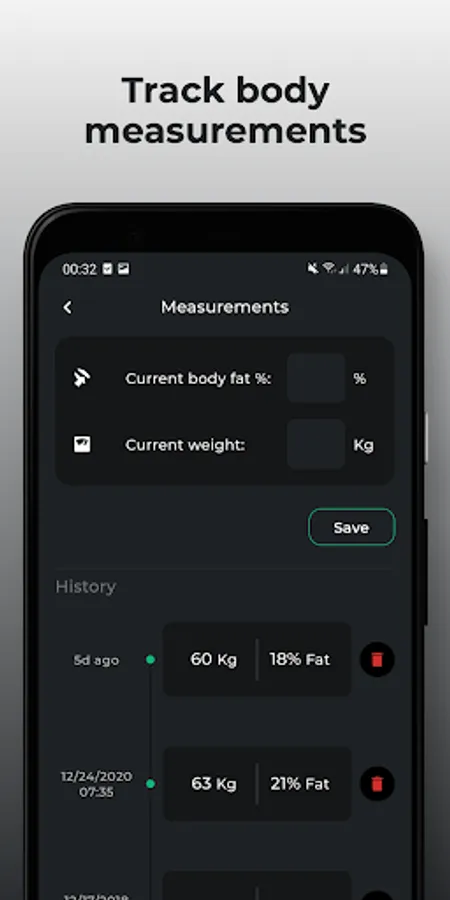 ● Body measurements - add your body metrics over time and see how you gain mass or lose weight