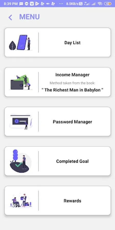 Myworld application is basically a todo application with more motivational quote and features like password manager, income manager, reward for completed goals ect...