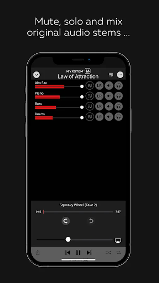 ‘Mike Casey - Law of Attraction,’ a MYXSTEM app release, enables users to completely control the listening experience. The app features mute, solo, pan and fade for each stem along with looping and sheet music of scores and parts. By adjusting the levels of each instrument (stem), musicians can build the perfect mix to play- and sing-along.