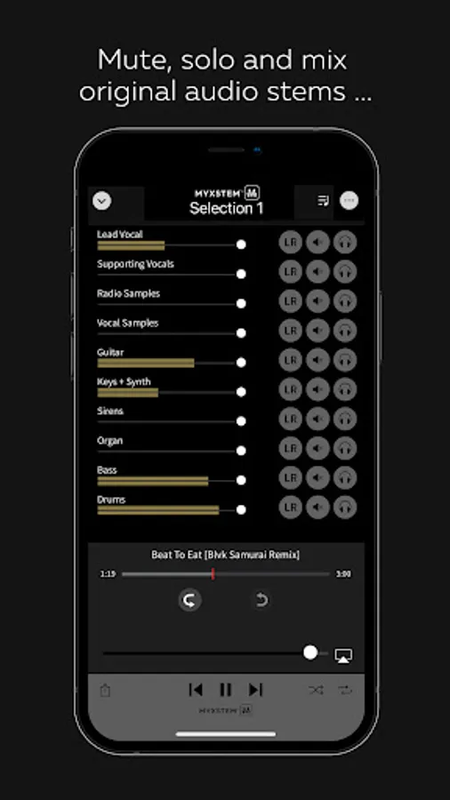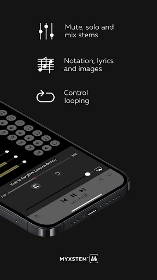 Featuring mute, solo, pan and fade for each stem along with tempo control, looping and sheet music. By adjusting the levels of each instrument (stem), listeners can build the perfect mix to play- or sing-along.