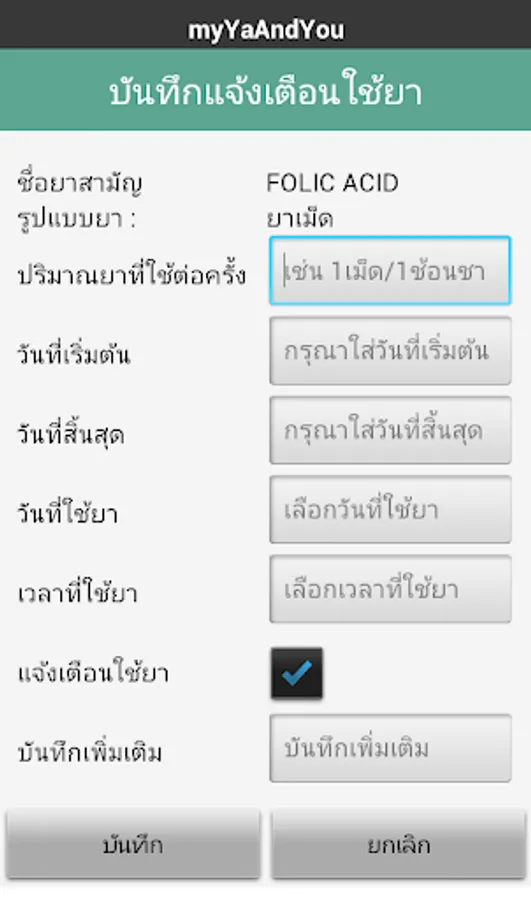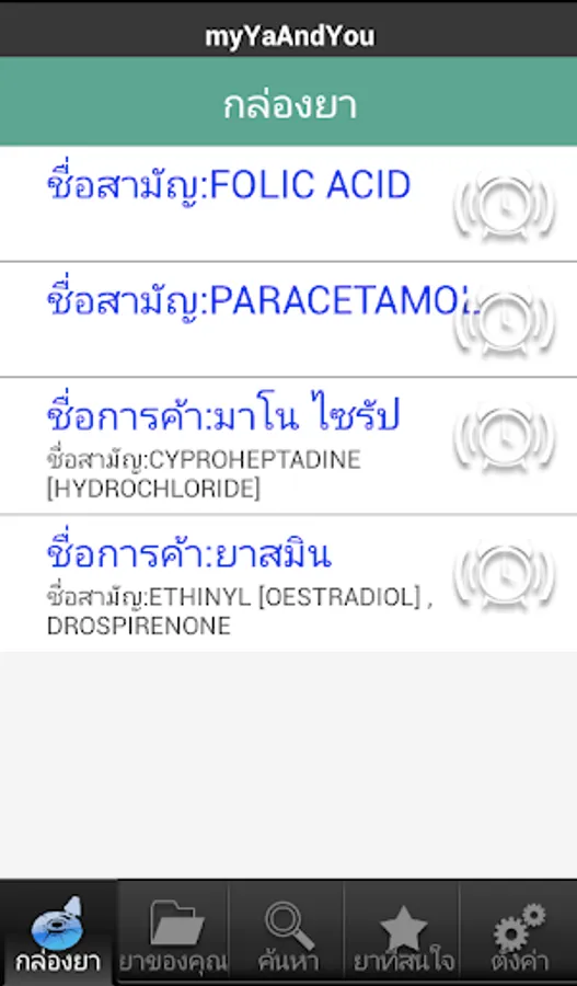 "Personal YaAndYou" (MyYaAndYou) is an extended version of the YaAndYou application. A provision of personal medication use information is the new service augmented to the previous smart features of YaandYou application for searching and providing the knowledge on medicine and health. To promote appropriate medication use and self-health care, the new features for self-recording of medication use and timely reminder to enhance compliance with the regimen prescribed by the medical doctors has been built up. With the collaboration between the Pharmaceutical Research and Development Foundation (PhaRed) and the National Electronics and Computer Technology Center (NECTEC), this application has been developed for the public to encourage easily and promptly access to medicine and health information. Furthermore, the searching results of the information with easy to understand Thai language linked with the YaAndYou website (http://www.yaandyou.net) is also a powerful tool for health care professionals to help communicate with their patients. To obtain the full version of "MyYaAndYou", you may visit at http://www.yaandyou.net/.
