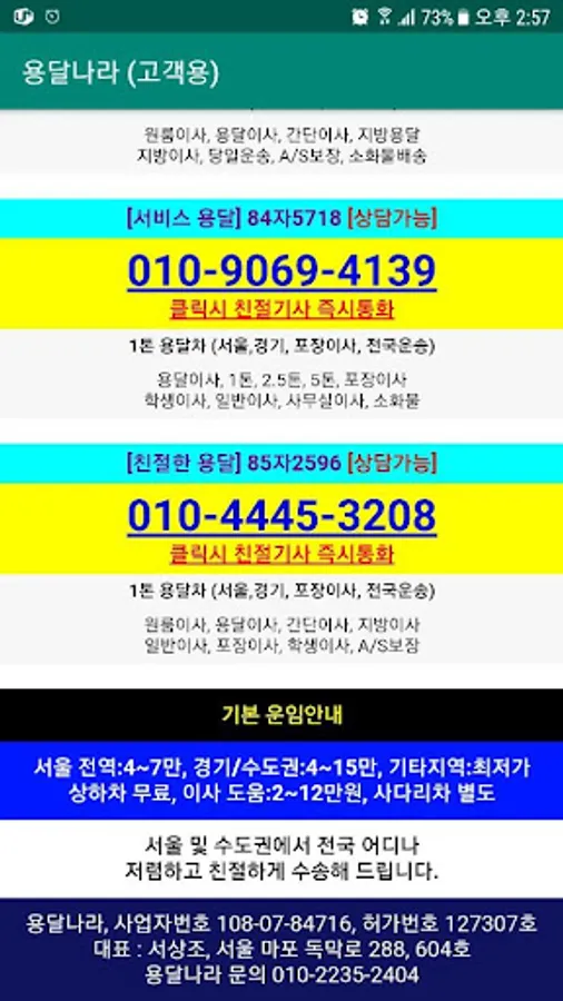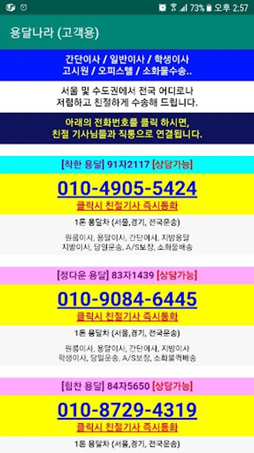 Yongdal Nara (for customers) is a service that guides you through the phone number of the Yongdal driver.