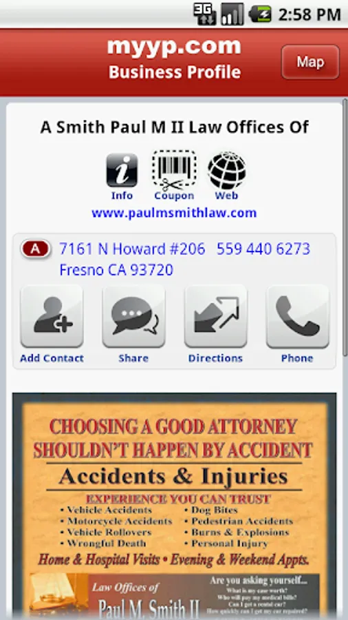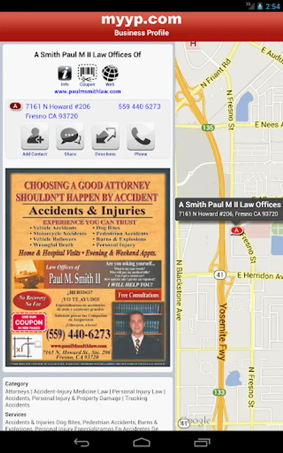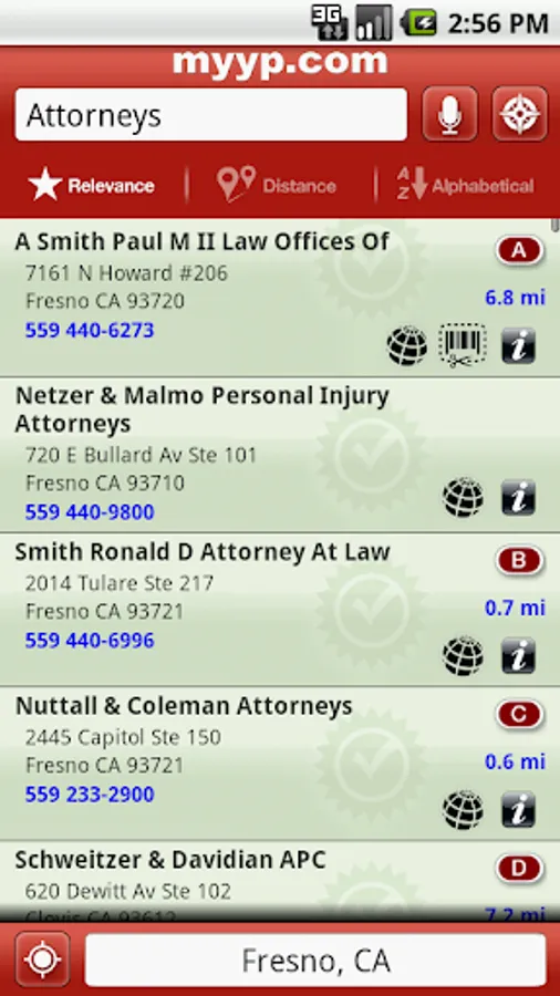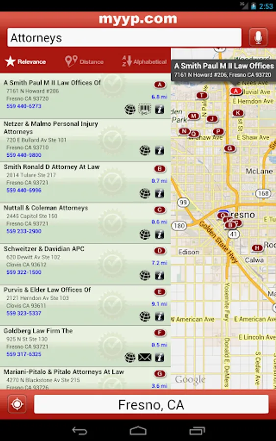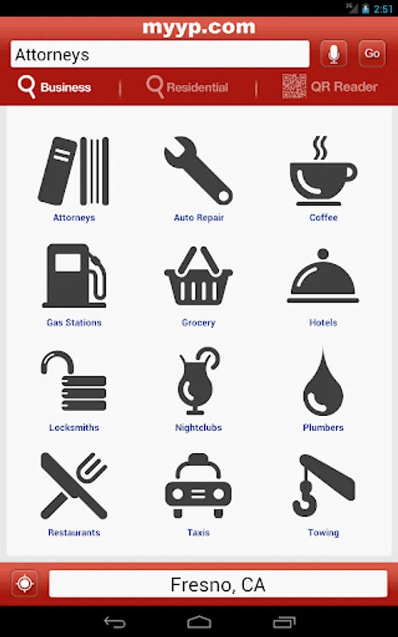 Find businesses, get directions, click-to-call a business, download coupons, and find enhanced information on business profile pages by toggling between a voice-driven list-view and an advanced map view. Yellow page publisher participation ensures accurate local content in many areas.
