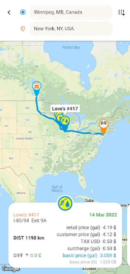 FuelSave uses diesel price information provided by Transnet Canadian Fuel Card Program. Diesel prices only for USA and Canada.