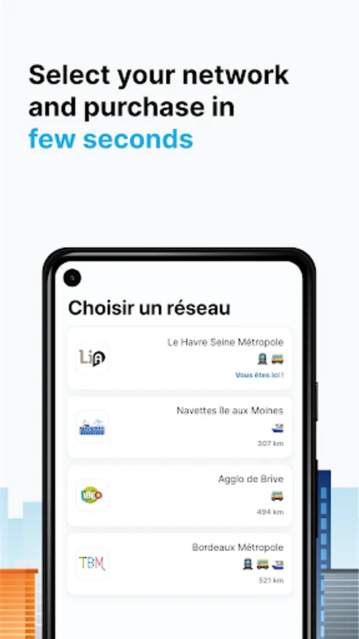 Choose your network: TBM Bordeaux, LiA Le Havre, Libéo Brive or Izenah Croisières